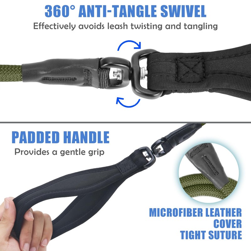 - 🐾【Let's See Which Hardware Updated】- ✅👍👍①Space Aluminum 360° Anti-tangle Swivel: Effectively avoiding leash twisting and tangling. ✅②Comfort Padded Handle: Soft Neoprene padding is lightweight & good in toughness, it will not hurt the wrist even under violent pull. ✅③Non-slip Rubber Stopper: Eliminating rope looseness, not only stronger and tighter than leather but also tighten and loosen smoothly. ✅④Micro-fiber Leather Cover & Tight Suture: High-level appearance and wear-resistant.