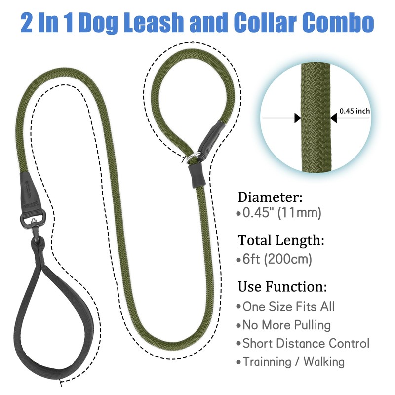 - 🐾【Perfect Length & Bright Colors】- 6ft (200cm) Total Length x 0.45"(11cm). Perfect Length for puppy small medium large breeds dogs training, walking, hiking or service. For the first time using anti pulling rope, 6 ft is easy lead and more efficient to operate. Our Slip Leads for Dogs acts as collar and leash in one, one size fits all. We provide Dog Slip Leash in 9+ stylish classic colors for your male or female dogs. Bright and Conspicuous, give you and your pets a happy mood.