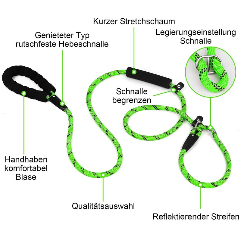 Slip Lead with Pull Stop, 1.0 x 180 cm, Retriver Dog Lead with Soft Padded Handle, Moxon Lead, Reflective Dog Lead Collar for Large Dogs (Green)