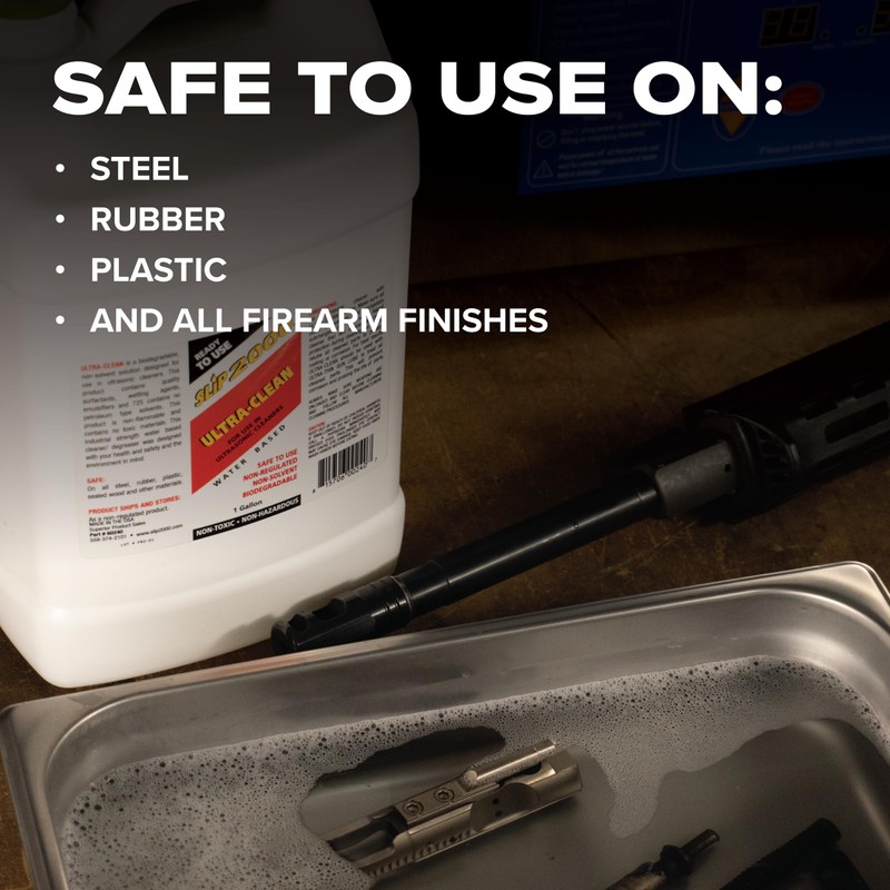 Designed for use in ultrasonic cleaners. This cleaner provides a safe and easy way to clean you guns while maximizing the cleaning potential of an ultrasonic cleaner.