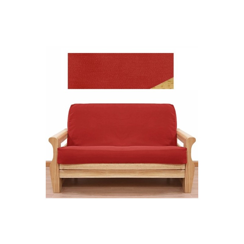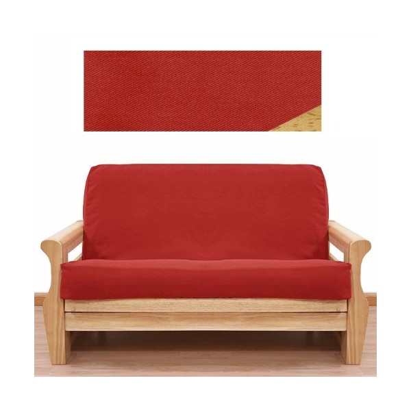 Made to fit Full size futon mattress measuring 54 inches wide, 75 inches long and up to 8 inches thick. Futon cover features 3 sided, concealed zipper construction. Solid Red fabric is crafted from upholstery grade duck and will last the test of time. With this slipcover, seasonal decorating throughout your home is fun and easy, for perfect results you may coordinate this solid slipcover with a variety of other solids, floral, plaids, and stripes. Now you can achieve a designer coordinated look without spending days or weeks. Durable and easy to care for, 50% cotton, 50% polyester. Machine washable.