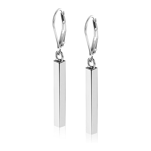 - Stunning Bar Earrings: 40mm length, 2.5mm width. Classic silver dangle earrings feature long bar drop and leverback clasp design, twinkling in light and gleaming, attractive in appearance, durable and lightweight for all-day wear.