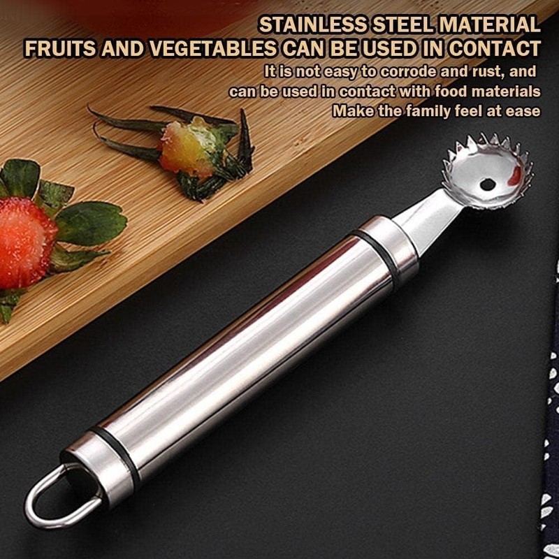 - Multi-Purpose Tool: This stainless steel tool is designed to hull strawberries, core tomatoes, and remove stems from cherries and other small fruits and vegetables.
