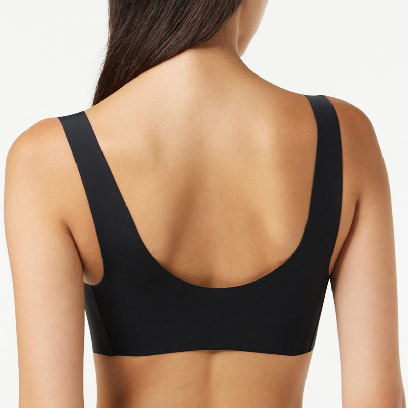 - Bralette without underwires, with feminine cleavage and removable pads.
