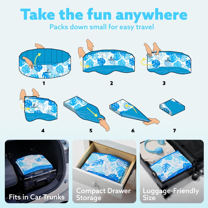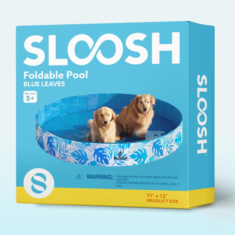 SLOOSH Foldable Dog Kiddie Pool - Portable Hard Plastic Kids Baby Doggie Swimming Pool, Anti-Slip Thick PVC Collapsible Pets Cats Whelping Box Puppy Bathtub (71" x 12")