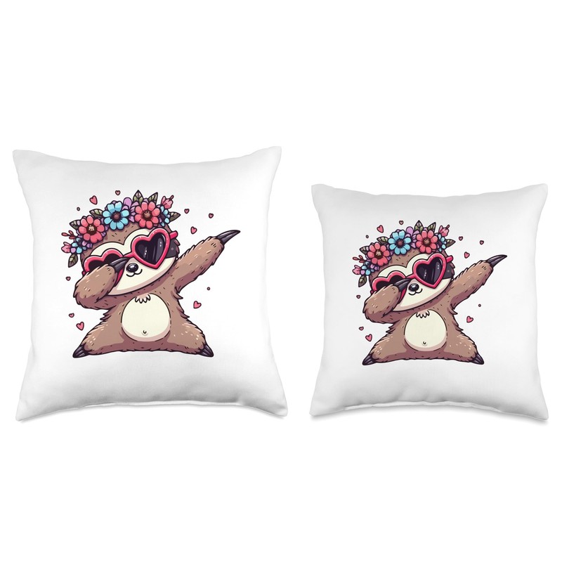 Sloth Heart Shape Sunglasses Dabbing Dance Lover Throw Pillow