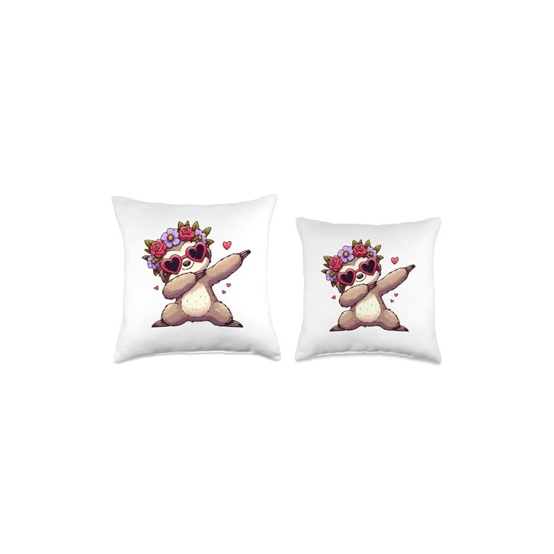 Sloth Heart Shape Sunglasses Dabbing Dance Lover Throw Pillow
