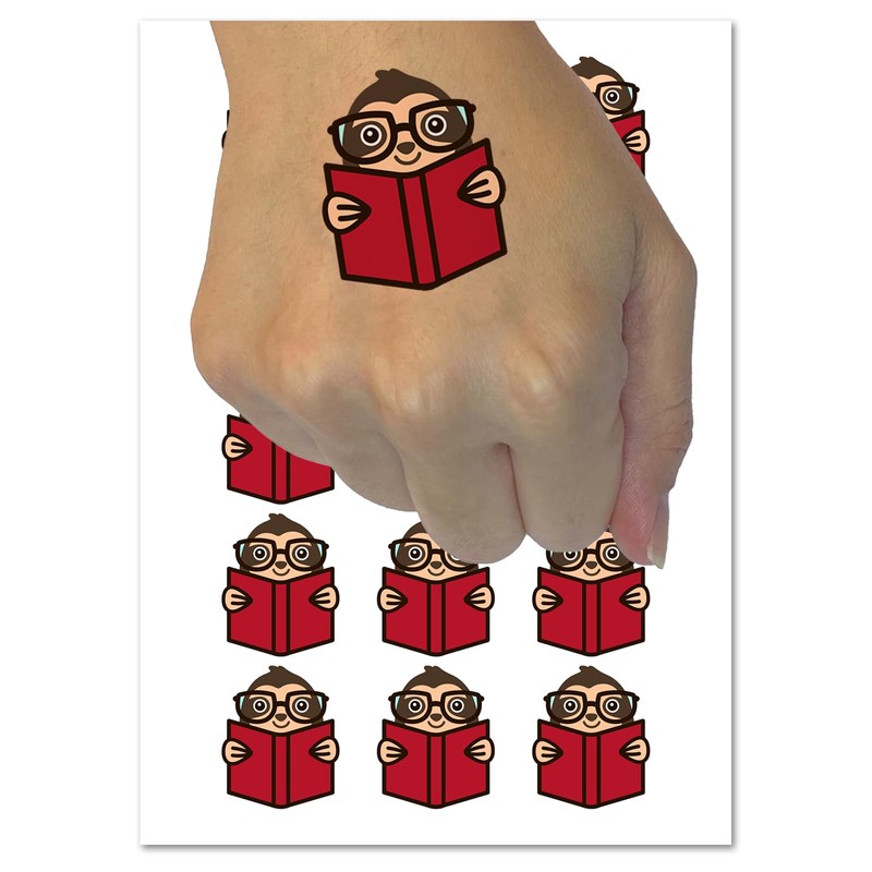 Sloth Reading Book Temporary Tattoo Water Resistant Fake Body Art Set Collection - 54 1" Tattoos (1 Sheet)
