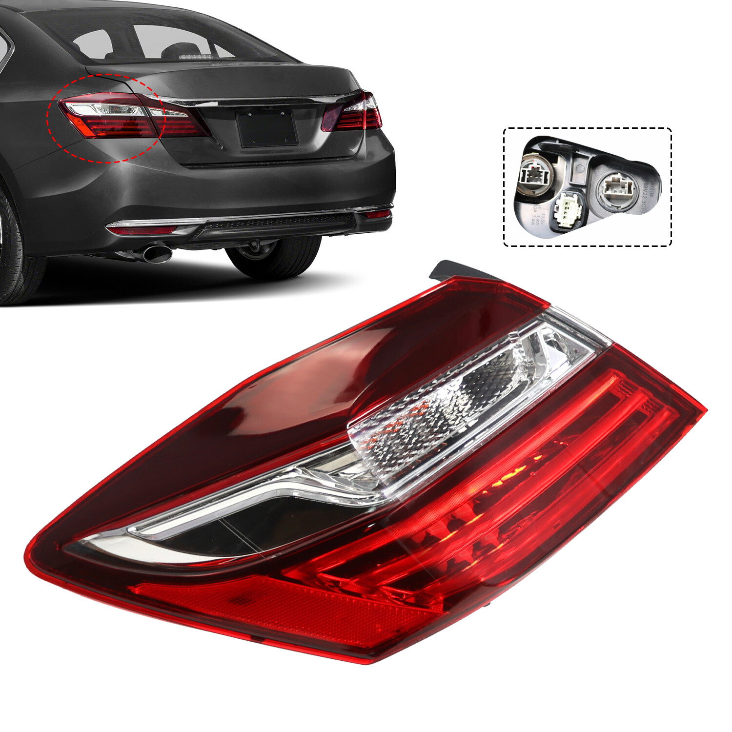 Notice:We maintain high standards of excellenceand  strive for 100% customer satisfaction!Please don't open cases or return requests without contacting us.If you have any questions about quality, shipping or other problems, please contact me first via eBay message.I will give you a satisfy solution.Specification:Housing Material:ABS PlasticColor:Black Housing+Red Lens    Lighting Technology: HalogenPlacement on Vehicle: Rear,LeftFitment:For Honda Accord 2016-2017Just for reference, Pls confirm the product if it matches your car before you purchase. OE Number:921023W050, KI2503148, 34155T2AA21, HO2802109 Features:Direct replacement for stock assembliesAll Headlight Lenses come with anti-yellowing/ageing coatingIncrease your v...