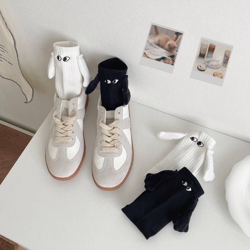 Washing Tips.Hand-stitched.Please hand wash carefully to prevent the eyes from falling off. It is a hand holding sock.The hands on the socks have Magnetic Connections.Two small hands can hold hands.Socks that hold hands when close is a magic sock.Hand to hand socks.The two hands hold each other as they get close.It is a magnetically attracted hand sock.Holding socks have magnetic forces. Average Size.Fits most US sizes 5-10 feet for men and 6 feet and up for women. When you and your lover wear holding hand socks and walk on the road, the 3D dolls on the socks will hold hands as they approach.This is magnetic connection between lovers.This is a very novel sock.This fun hand holding sock is suitable for giving to couples.Prepare them for your girlfriends, boyfriends, wives, husbands, coworkers and friends! It is perfect for birthdays, Christmas, anniversaries, engagements, wedding receptions, white elephants or wedding gifts. This unique hand holding sock features a 3D Doll Design.This is a sock that can hold hands, with two large three-dimensional eyes and two cute magnetic suction hands.The design of 3D toys for socks adds color to your clothing pairing. Socks come in black and white.Black and white are timeless classics.Pull socks are specifically designed for couples and friends.The socks are only black and white and the hands have magnetic force, symbolizing the soul adaptation between partners.Black and white two colors, hands can be held together also represents the unity and friendship between friends. It is a novelty and funny gift.Womans Birthday Gifts.Hand in hand socks can be a birthday gift for wife, husband, Christmas gift, Valentine's Day gift. Handshake socks are a friend's birthday gift, a union gift, a parent's gift, a woman's or a man's gift.Handshakes socks are very interesting socks with magnetic hands。The two hands on the socks will hold together.That is very cute and funny.