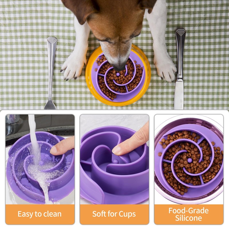- 【EASY TO CLEAN】Our dog slow feeder bowl insert is designed to accommodate wet and dry food and treats with ease. After mealtime, effortlessly remove the slow feeder insert from the bowl for easy cleaning. Its smooth, non-stick surface allows for effortless wiping, while the dishwasher-safe design ensures stress-free cleaning.