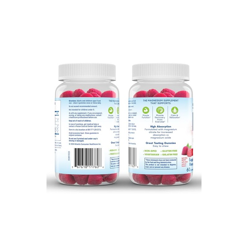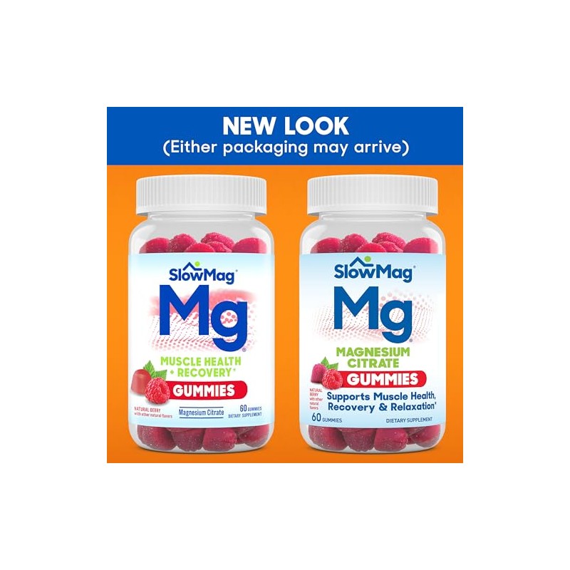 SlowMag Mg Muscle Health Recuperacin Gomitas, citrato de magnesio en 60 unidades - Producto Original de Alta Calidad, Entrega Rápida y Segura, Garant