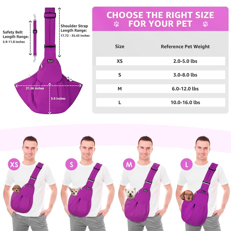 SlowTon Dog Carrier Sling - Thick Padded Shoulder Strap Adjustable Dog Carriers for Small Dogs, Puppy Carrier Purse for Pet Cat with Front Zipper Pocket Safety Belt Machine Washable (Purple S)