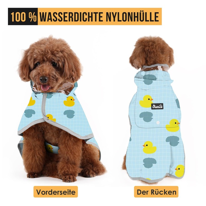 SlowTon Dog Raincoat, Waterproof, Transparent Double Layer Rain Jacket Dog with Hood for Small, Medium and Large Dogs, Dog Raincoat with Reflective Stripes and Storage Bag