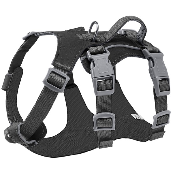 - Adjustable for Easy Wear --- The easy walk dog harness has 6 adjusting buckles to help you better adjust the size of your dog. The buckles releases and adjusts quickly, making it easier and faster to put on or take off the harness for your dog.