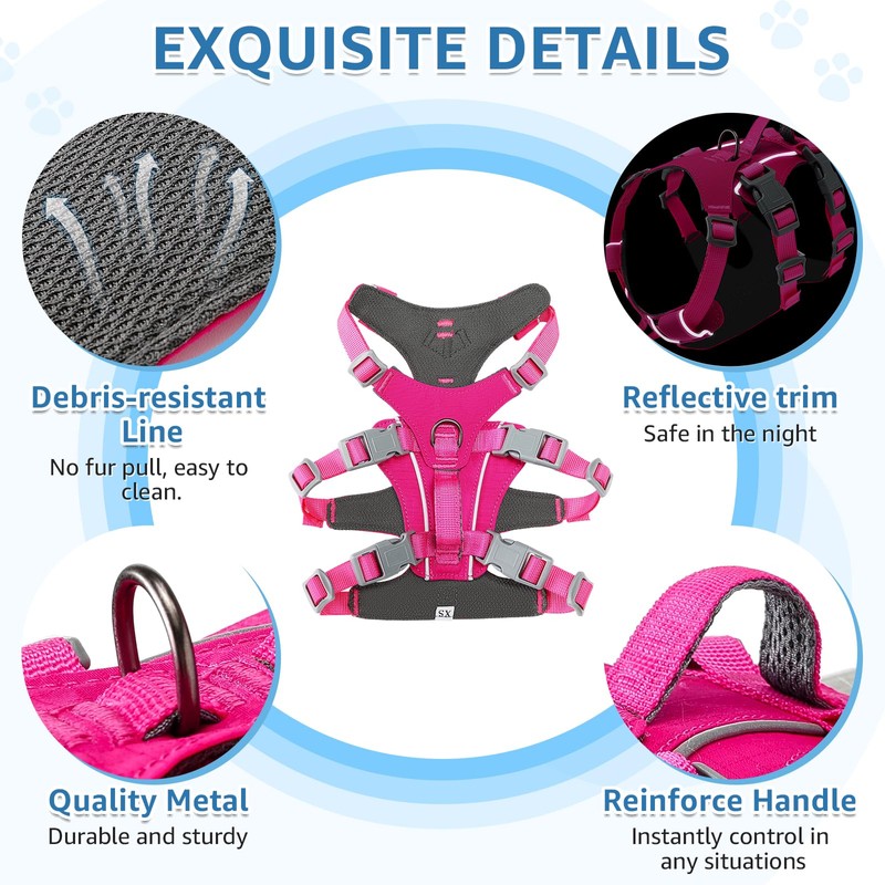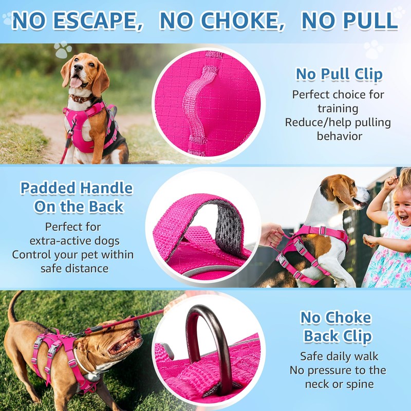 - Triple-Strap Escape-Proof Design --- Features 6 adjustment points and three reinforced straps that wrap securely around your dog’s body, preventing escapes without restricting movement. If you have a dog that is active and likes to run, this dog harness will be a good choice for you.