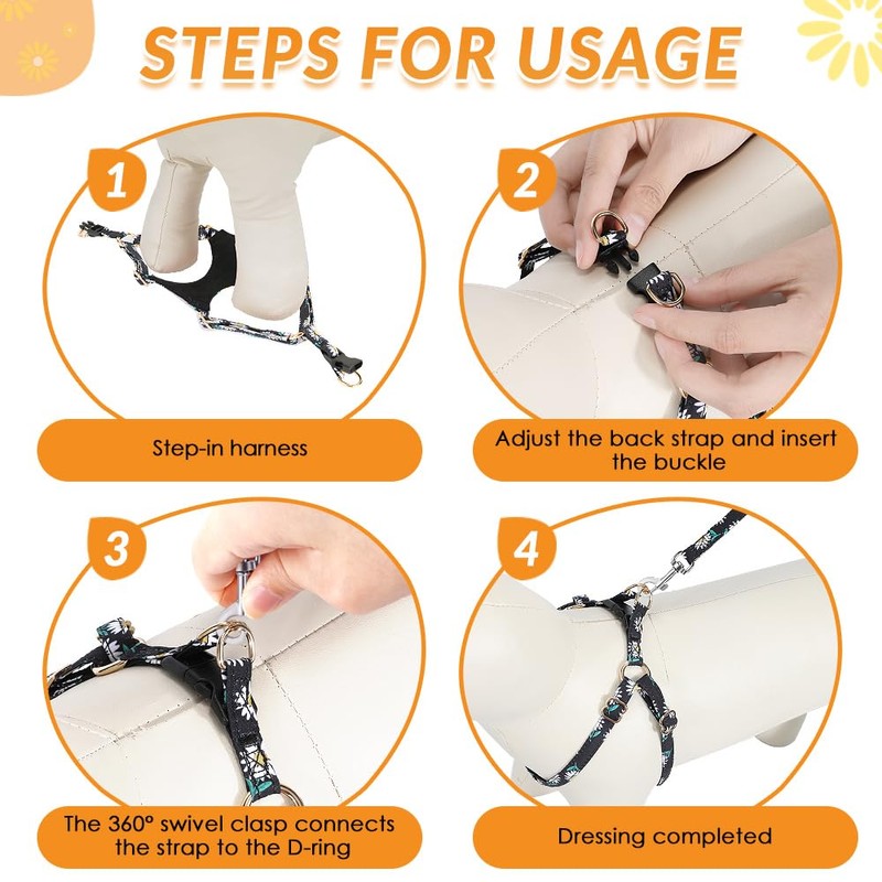 SlowTon Puppy Harness and Leash Sets - No Pull Soft Dog Harness Small Dog Adjustable Lightweight Vet Harness Ideal for Walking Running Training for Puppy Small and Medium Sized Dog, Floral Black