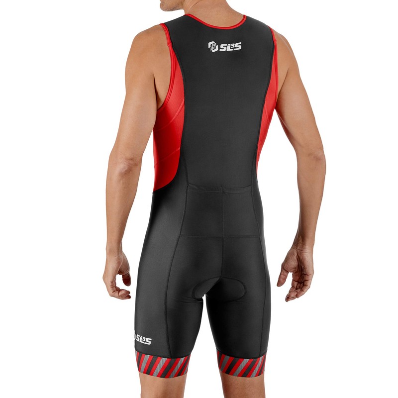SLS3 AG Triathlon Suit Men - Durable FRT Sleeveless Trisuit Men - Lightweight Mens Tri Suit, 2 Pockets (Black/Red Stripes, X-Large)