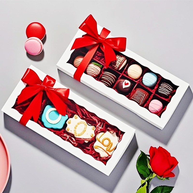 SLShePack SLShePack 50PCS 12x5x1.5 Inch Cookie Boxes with Window Chocolate Truffle Brownie Packing Bakery Pastry Gift Boxes for Soap,Dount,Browine Cake,Treat Boxes for Party Favors Christmas