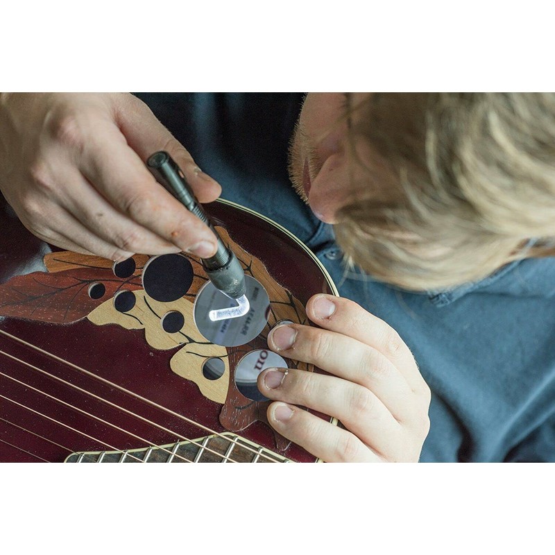 - Product Features: Fiber-Optic Acrylic - Easily attaches and slides onto the flashlight lens High Beam Light - Illuminate any scratches or debris within the barrel Flashlight - Use as a stand-alone light Pocket Clip - Perfect Size to keep close Black Color Requires 1AAA Battery ( Battery Not Included) - Bright light with efficient power