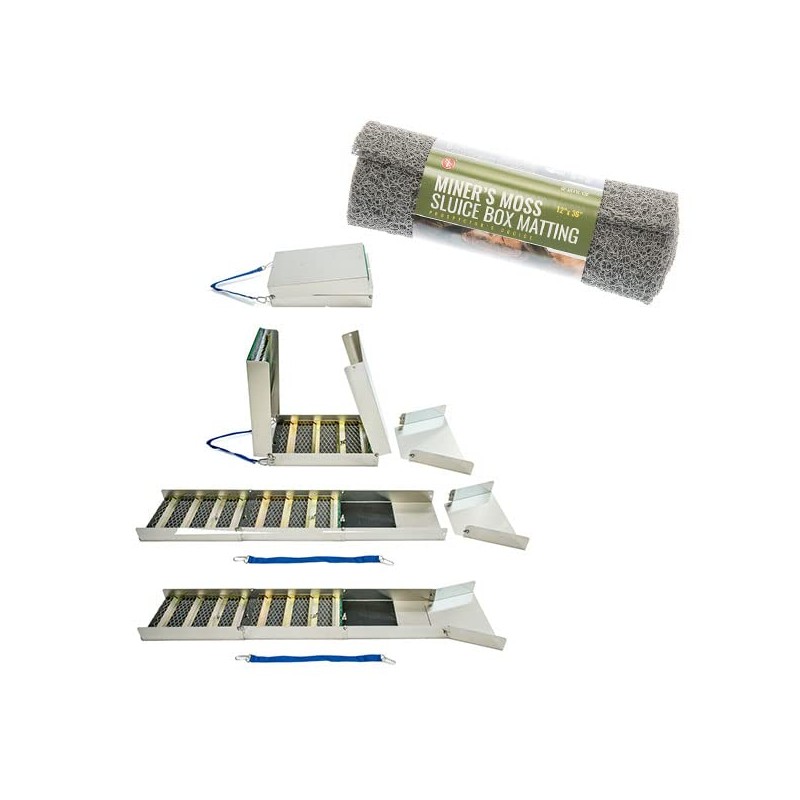 - Aluminum Folding Sluice Box Includes Carpet & Miners Moss Extended : 50" Folded : 15" lus extra roll of miners mos
