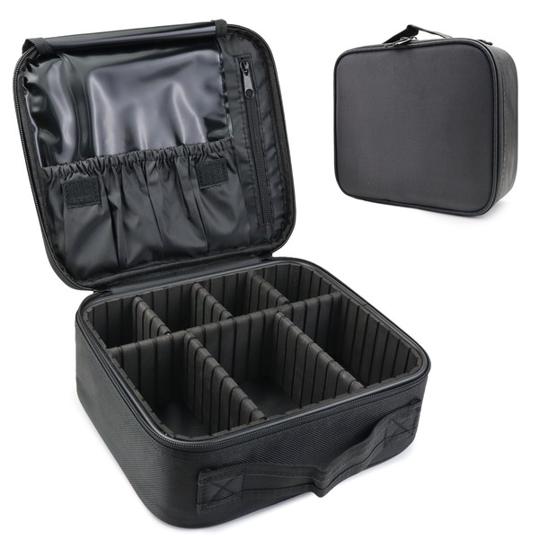 SLUMAZI Travel Makeup Bag Makeup Cosmetic Train Case Organizer Portable Storage Bag with Adjustable Dividers for Cosmetics Makeup Brushes Toiletry Jewelry Black