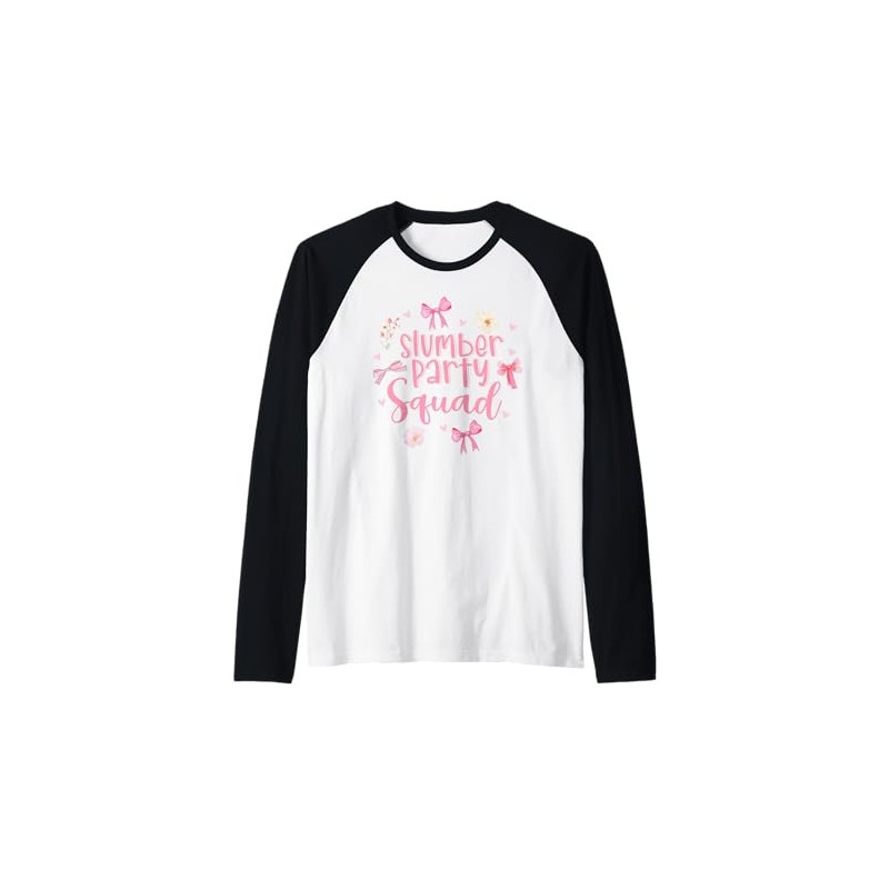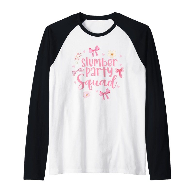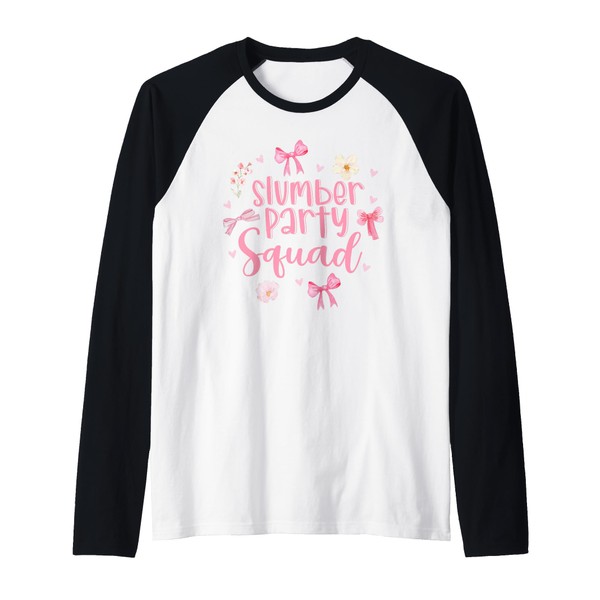 - Looking for sleepover party supplies? Look no further than this cute matching slumber party squad item. Cute and trendy coquette pink bow pajama top for your next sleepover party with friends! Slumber Party T-Shirt for Girls Sleepover Party