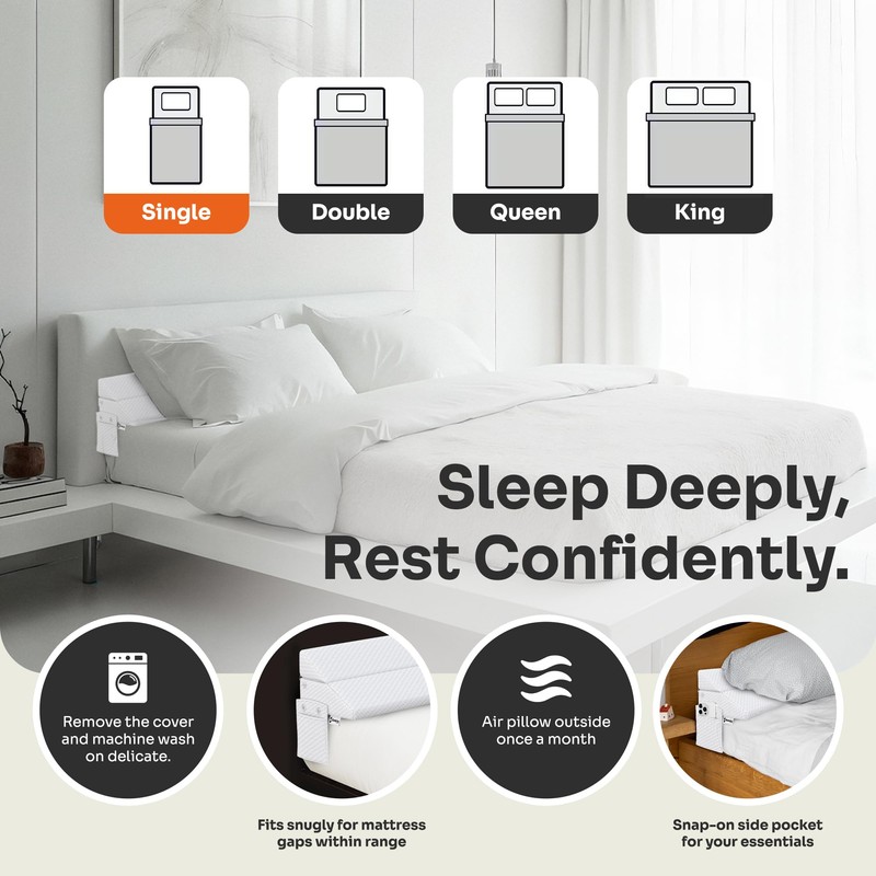 - ✔ Fits Every Bed for a Stress-Free Sleep Available in King, Queen, Double, and Single sizes, this bed wedge gap filler bridges gaps up to 7 inches between your mattress and headboard or wall. No more lost pillows, remotes, or toys—enjoy uninterrupted relaxation every night!