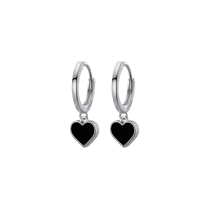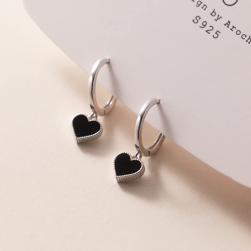 SLUYNZ 925 Sterling Silver Black Heart Hoop Earrings for Women Love Heart Hoop Earrings Huggie (A-Silver)