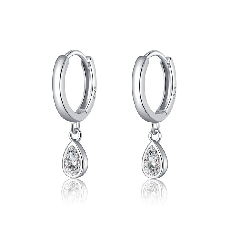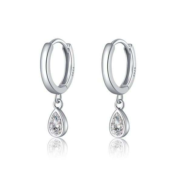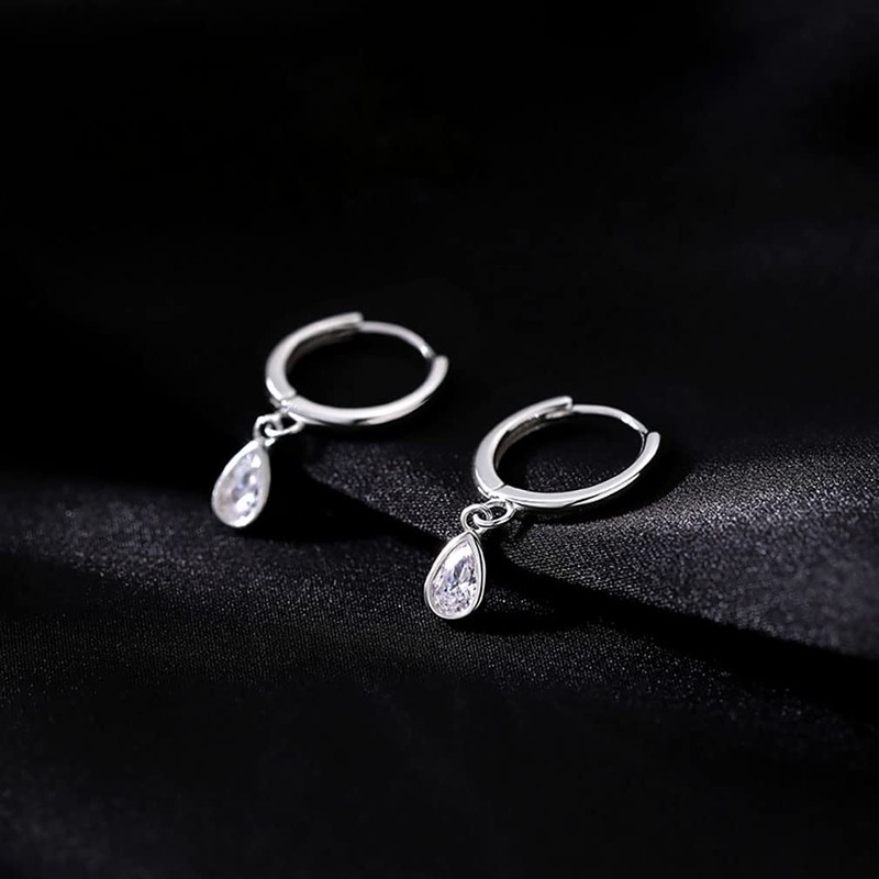 - DESIGN: These teardrop drop earrings are designed in hoop. The small hoop pierced earrings combine the sterling silver and sparkling crystals, teardrop CZ design makes you stand out on any special occasion, stunning and elegant.