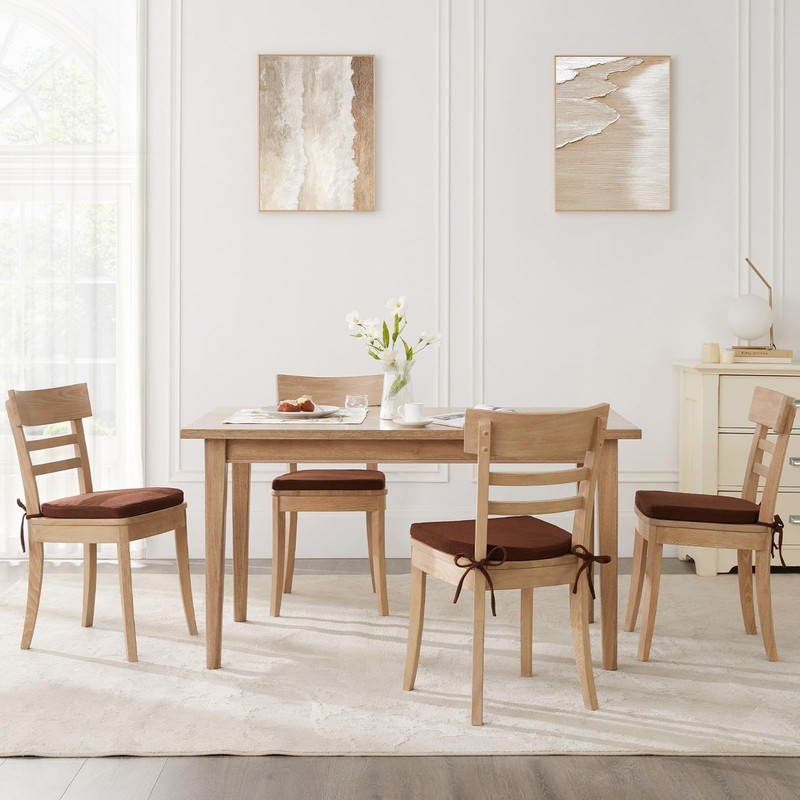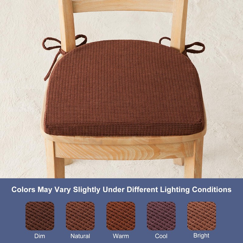 SM-XLHN Kitchen Chair Cushions Set of 4 for Dining Chair, Soft Seat Pads with Non-Slip Bottom & Ties for Indoor Kitchen Dining Furniture, 15.5" x 15.5" Brown