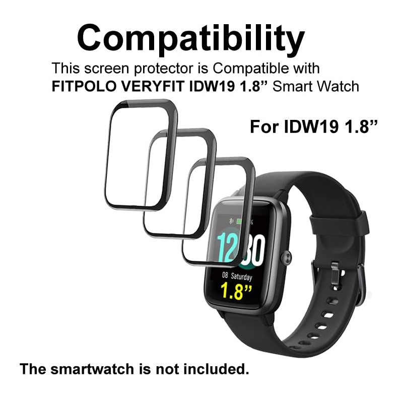 - 3D Screen protectors Compatible with Fitpolo VERYFIT IDW19 1.85” smartwatch