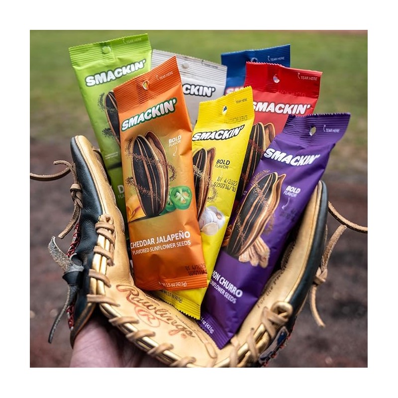 - GET SMACKIN': The classic sunflower seed reimagined with bold flavors, jumbo sunflower seeds and no more salty burn. Every small-batch of hand crafter sunflower seeds is coated in gourmet seasoning and finished with a signature roast.