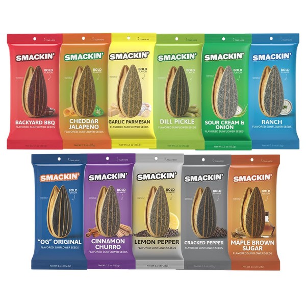 SMACKIN' Sunflower Seeds, Roasted Jumbo Small-Batch, American Made - Variety, 1.5oz bags (11 pack)