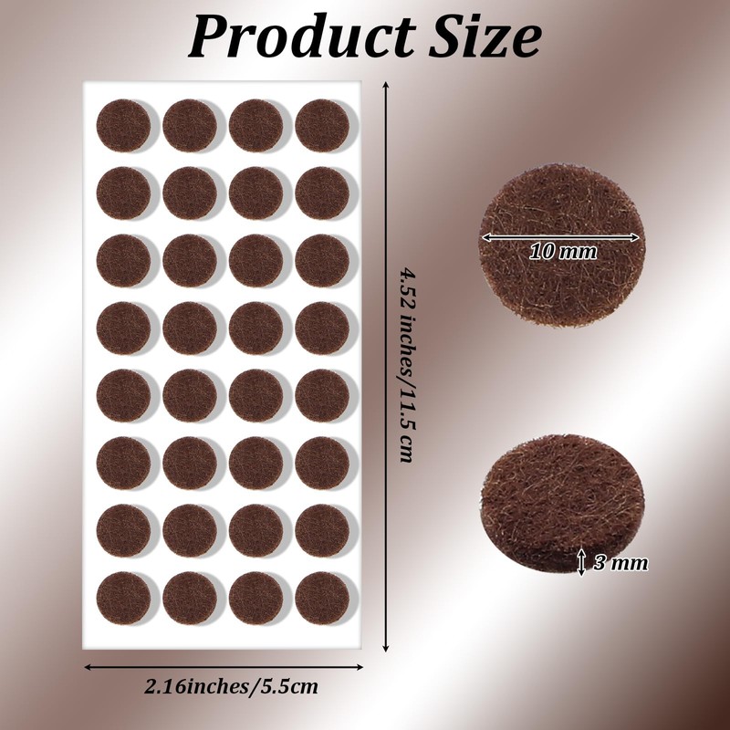 - 【VALUE PACK】 Get complete coverage with 224 premium round brown adhesive felt pads per pack. The versatile 10mm diameter and 3mm thickness suit nearly any household item, making this economical set perfect for whole-home furniture protection and noise reduction.