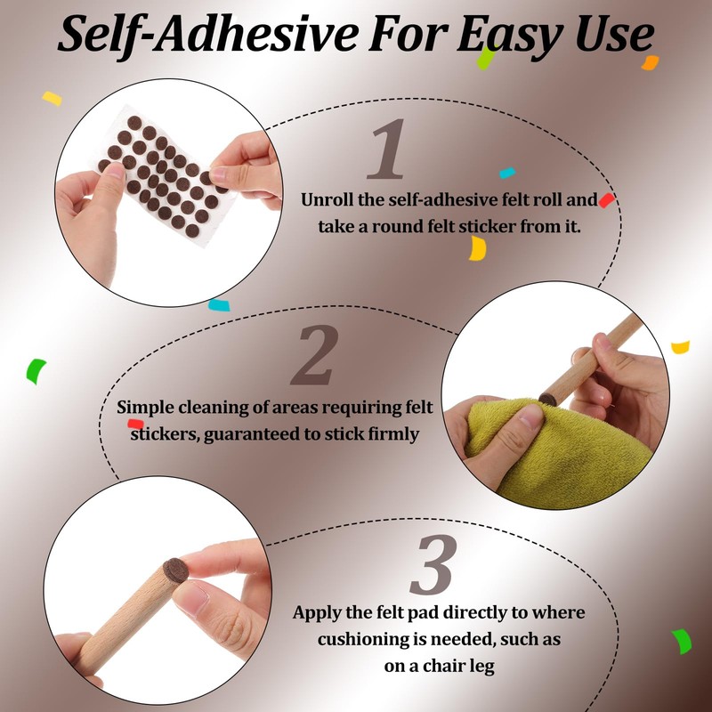 - 【VERSATILE USE】 These multi-functional felt stickers provide ideal solutions for cabinet doors, drawers, tables, chairs, and delicate glass surfaces. Use them as protective chair leg pads for wood floors or as safety-enhancing rubber end caps—adaptable for countless household applications.