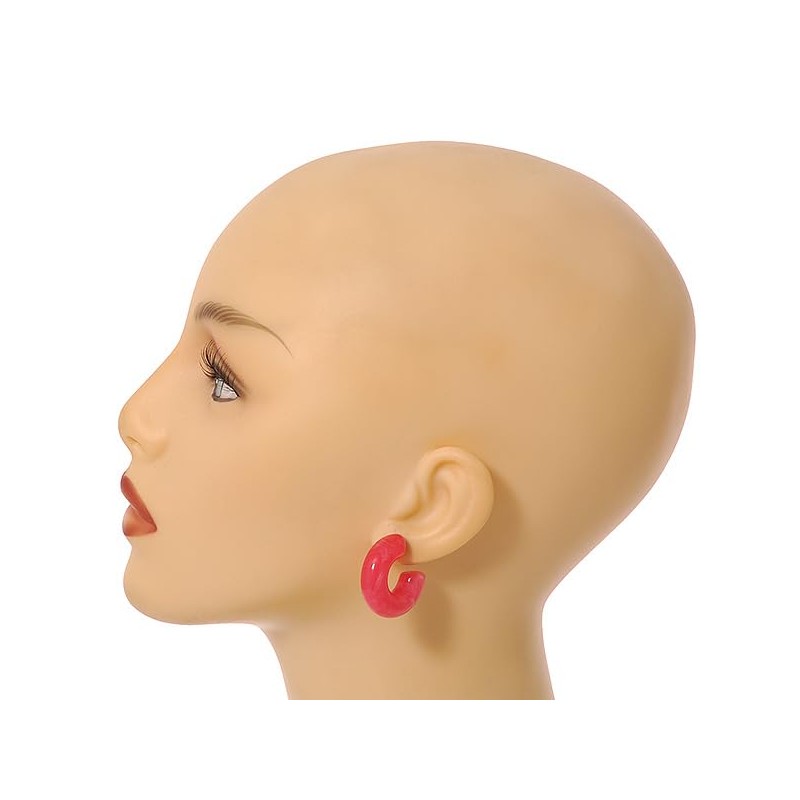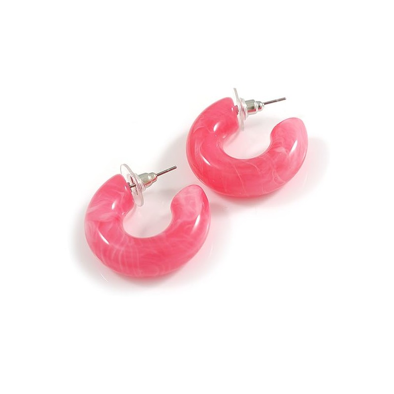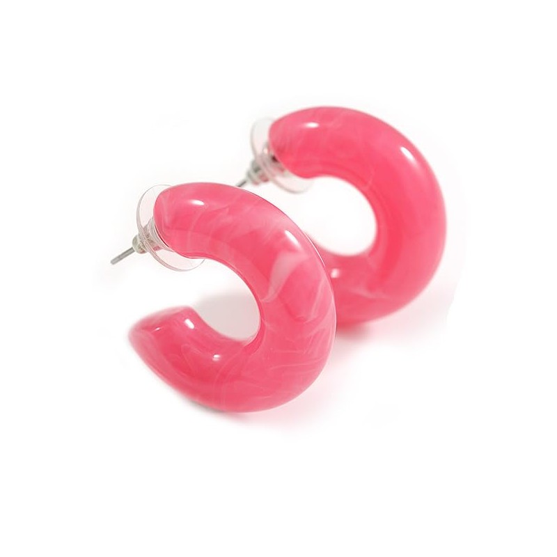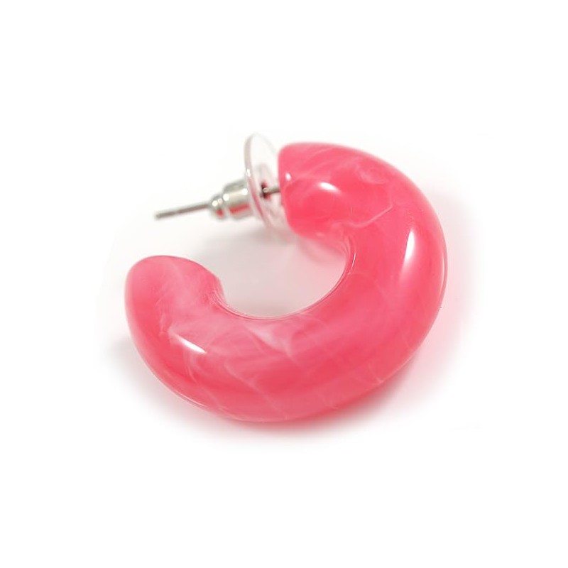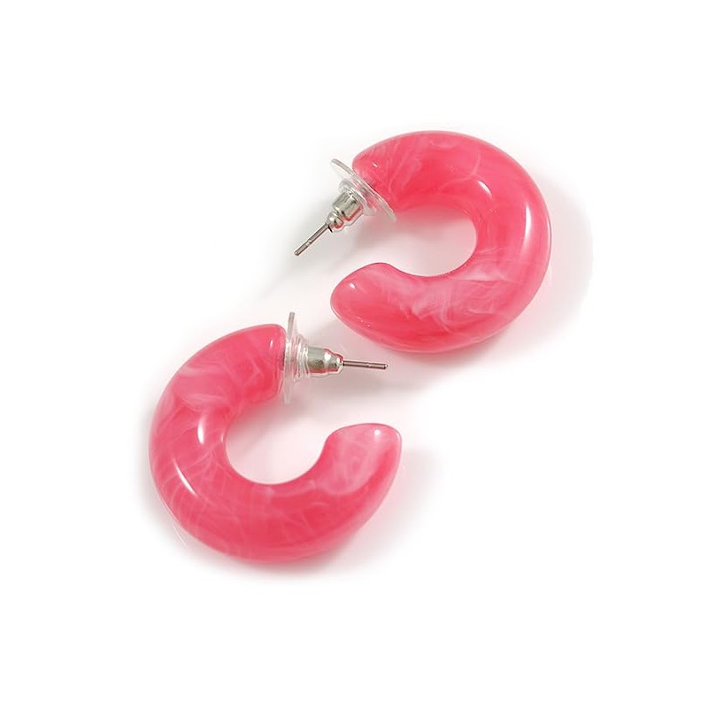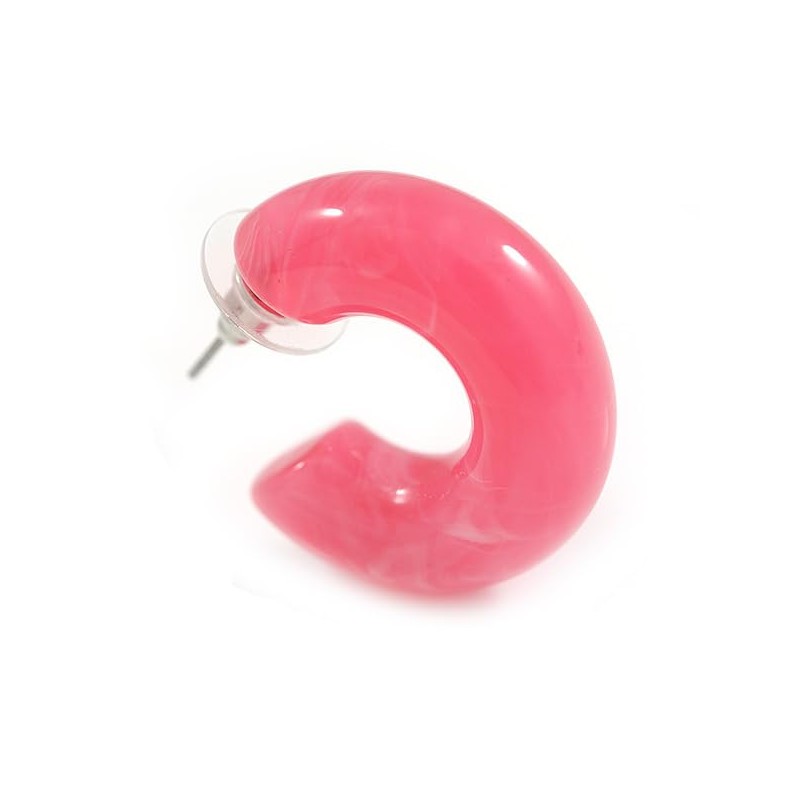 Small Acrylic Thick Half Hoop Earrings with Marble effect in Pink/White Colours - 28mm Diameter