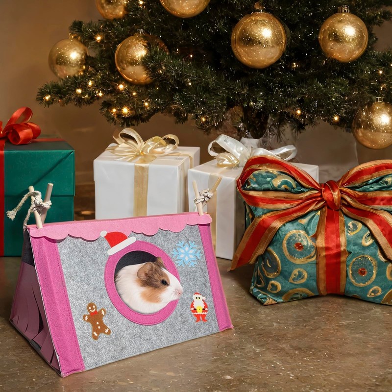 - VERSATILE DESIGN Suitable for a variety of small animals such as hamsters, guinea pigs, ferrets, chinchillas, hedgehogs, rats and more, this hideaway house is a versatile addition to any pet enclosure or cage.We also have decorative stickers for everyday use and for Christmas.