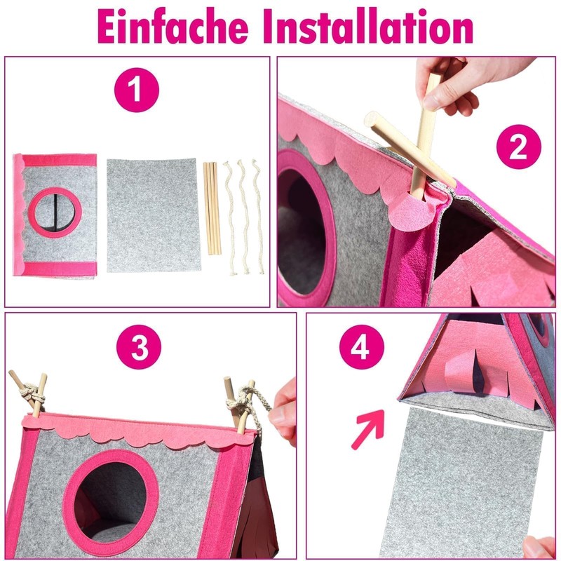 - COMPACT AND CONVENIENT With its compact size, our hideaway house is easy to place in pet cages or enclosures, providing a specific area for relaxation and play, while maximizing space efficiency.