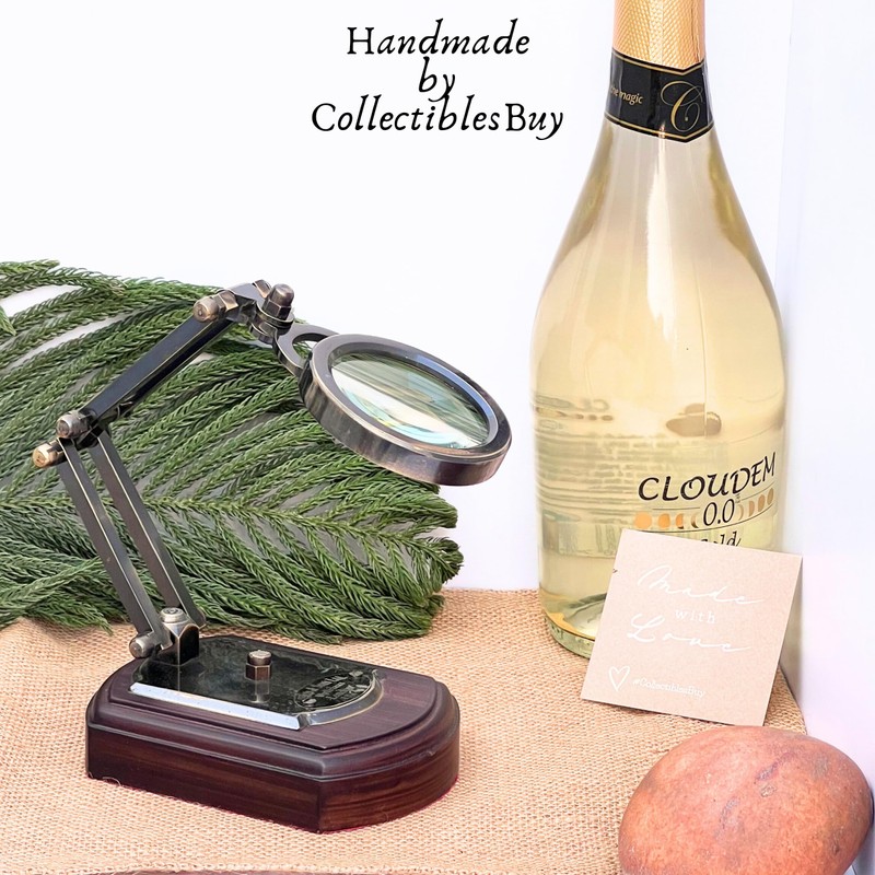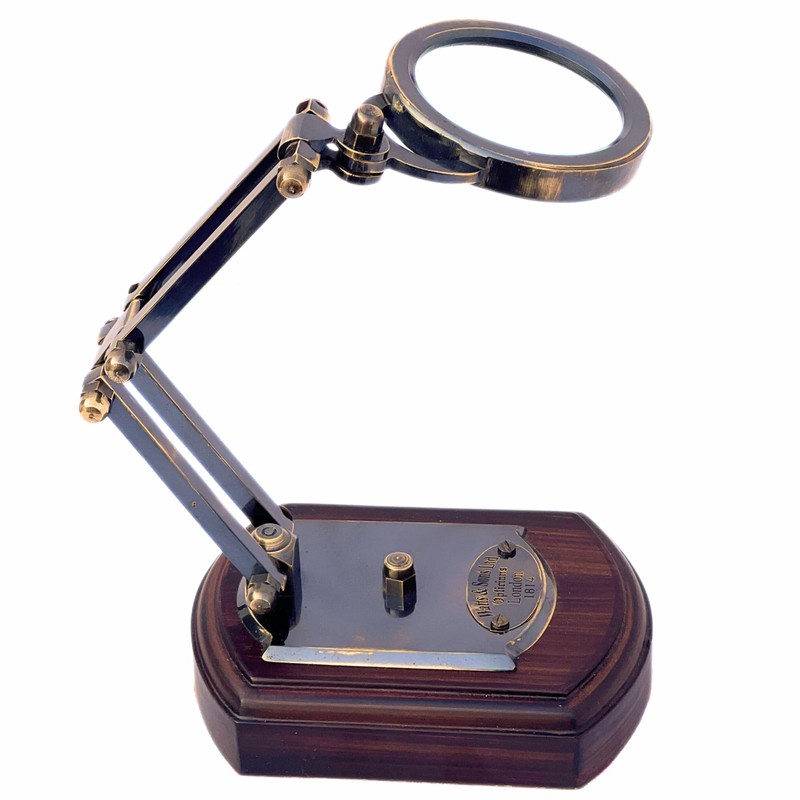 Small Antique Brass Moveable Lens Magnifying Royal Décor