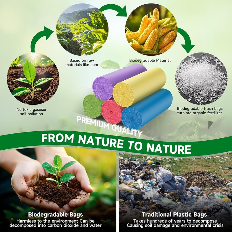 Small Trash Bags with Eco-Friendly Design – Compostable & Biodegradable Material: Crafted from plant-based materials, these unscented liners break down naturally over time, reducing your carbon footprint effortlessly.