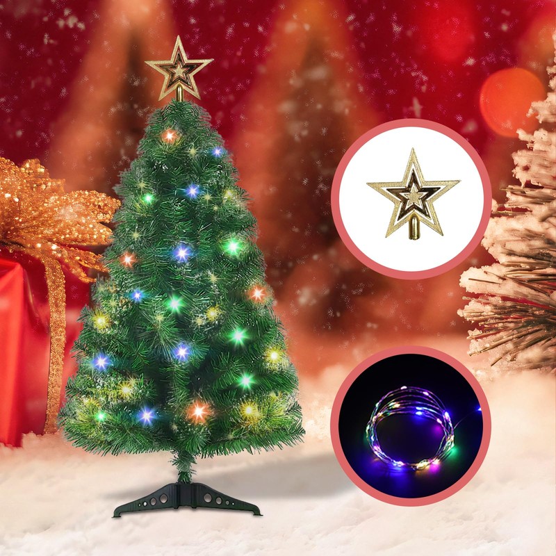 - 🌟3ft Christmas Tree: Stands approximately 3 feet (35 inches / ~90cm) tall, providing ample space for your decorations. Includes a 6-meter string of 60 LED lights and a tree-top star.