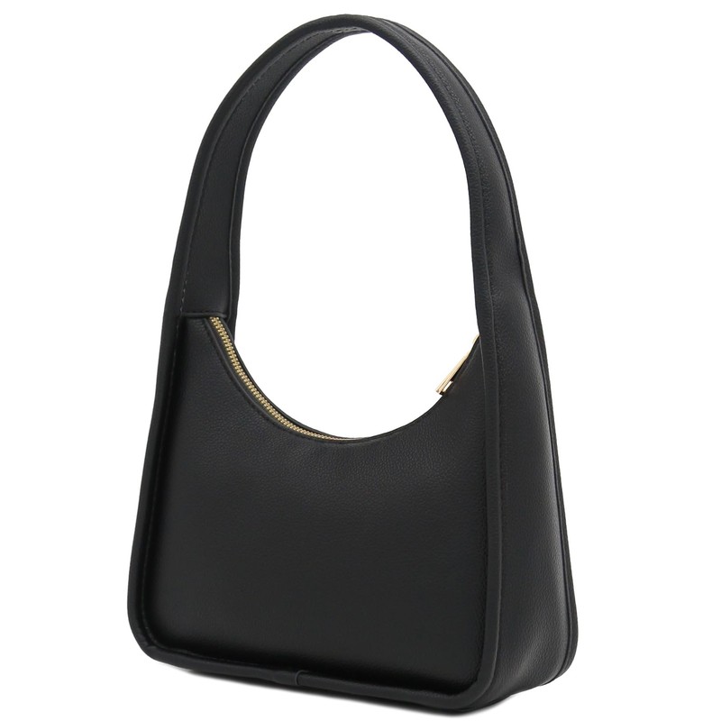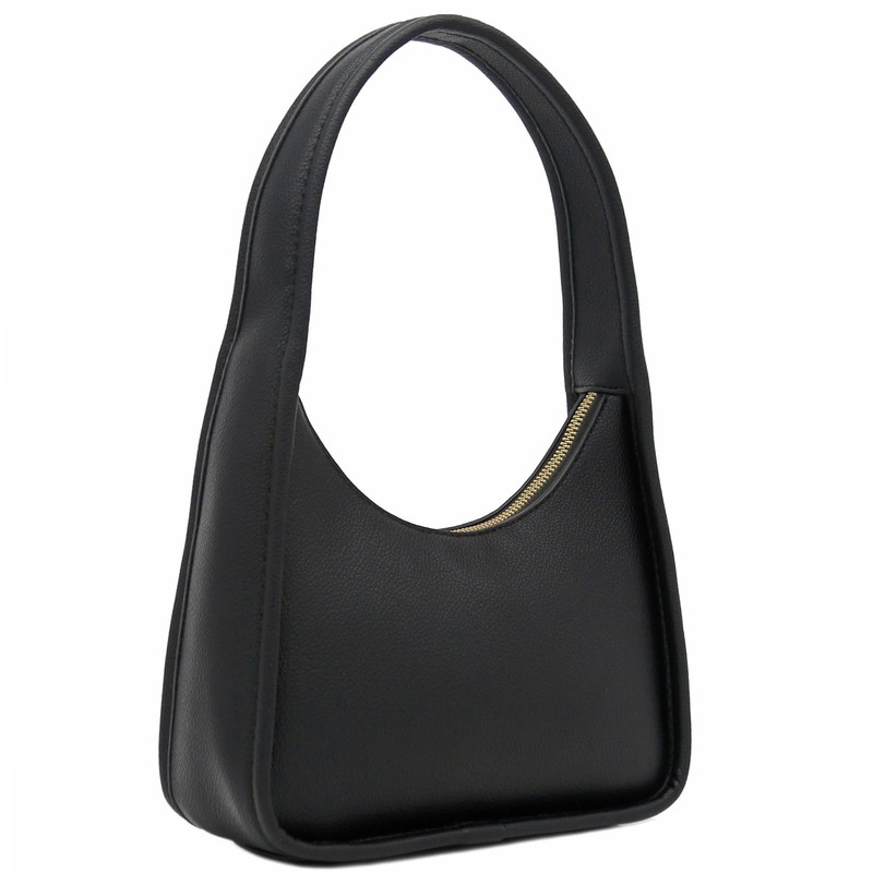 Small Curved Shoulder Bag Minimalist Underarm Crescent Hobo Handbag (Black)