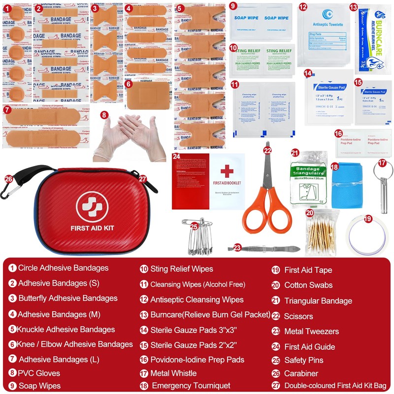 - VERSATILE & ALWAYS READY: This mini first aid kit is perfect for families, offices, vehicles, camping, hiking, boating, and travel. Whether at home, work, or outdoors, it ensures you're prepared for unexpected situations.