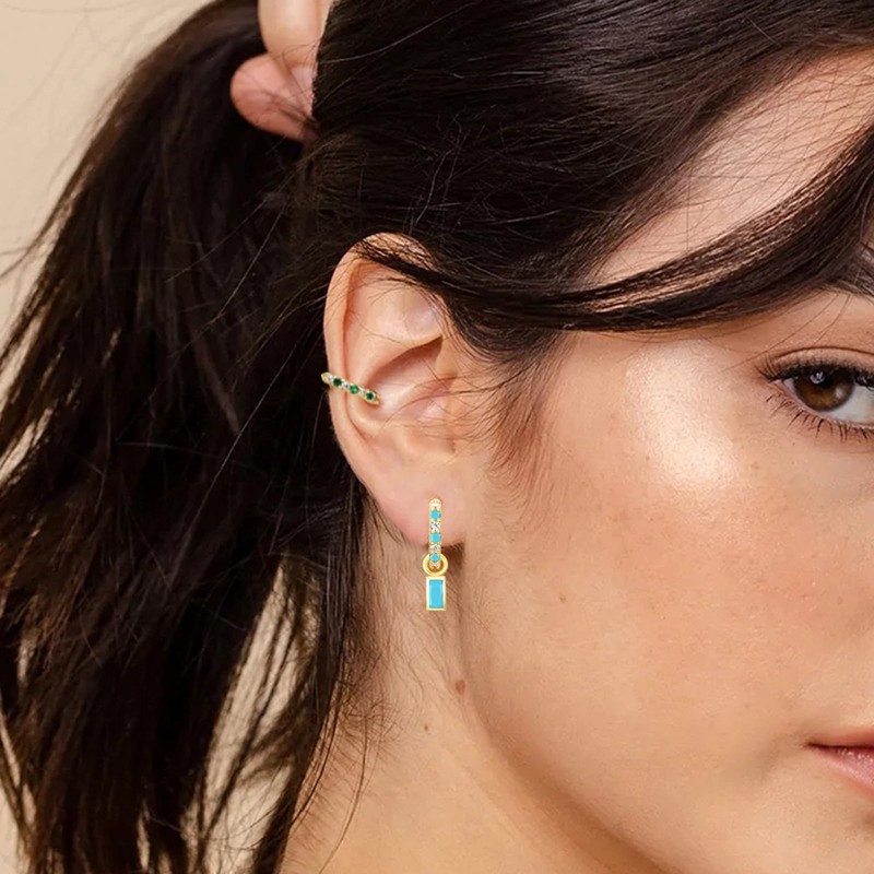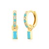 Small Gold Huggie Hoop Earrings With Sky Blue Square Drop, 14K Gold, not