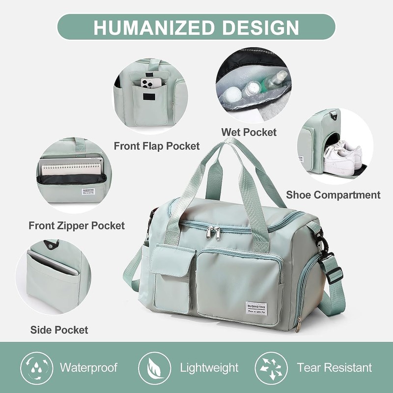 Small Gym Bag for Women, Waterproof Travel Duffle Bag Carry On Weekender Bag with Shoe Compartment & Wet Pocket, Gym Tote Bag for Travel, Workout, Sport