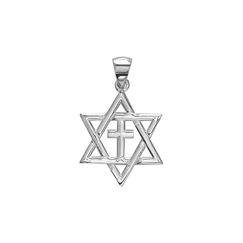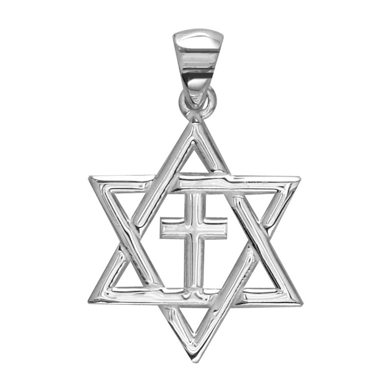 Small Messianic Star of David with Cross Charm in Sterling Silver