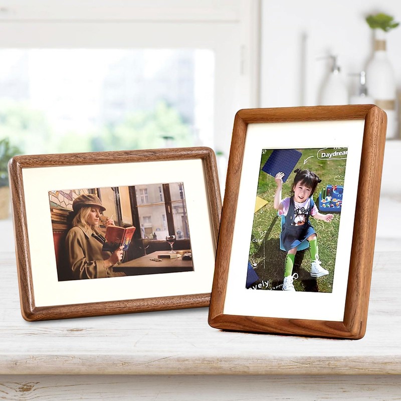 - Durable & Safe Design:This handmade wooden photo frame is made of selected natural walnut wood. In terms of structural design, it is equipped with a thickened and reinforced solid wood desktop stand to firmly support the photo frame without fear of accidental collisions; the bottom is equipped with a sturdy bottom plate with a non-slip texture, which can not only effectively prevent the photo frame from sliding and tipping, but also form a dustproof seal to prevent dust from eroding the photos, protecting your precious memories in all directions.