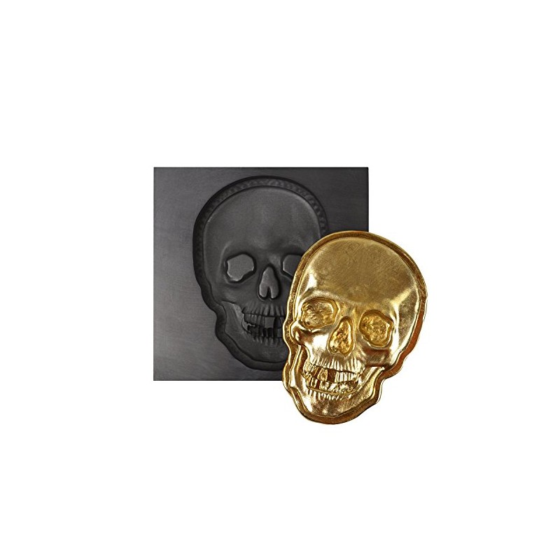 Skull 3D Graphite Ingot Mold - 30 mm x 30 mm x 5 mm- This mold is ideal for casting a 3D image. Works great with Gold, Silver, Copper, Aluminum, Tin and other precious and non precious metals. Gold ingot for photo reference only.