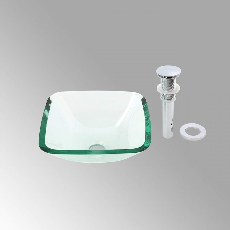 - READY TO INSTALL - This double layered Square shape tempered glass sink consists of free 100% Chrome plated brass upgraded Pop-up drain, mounting ring with silicone gasket. These are packed and shipped carefully to avoid any damage during transit - BUY WITH CONFIDENCE!